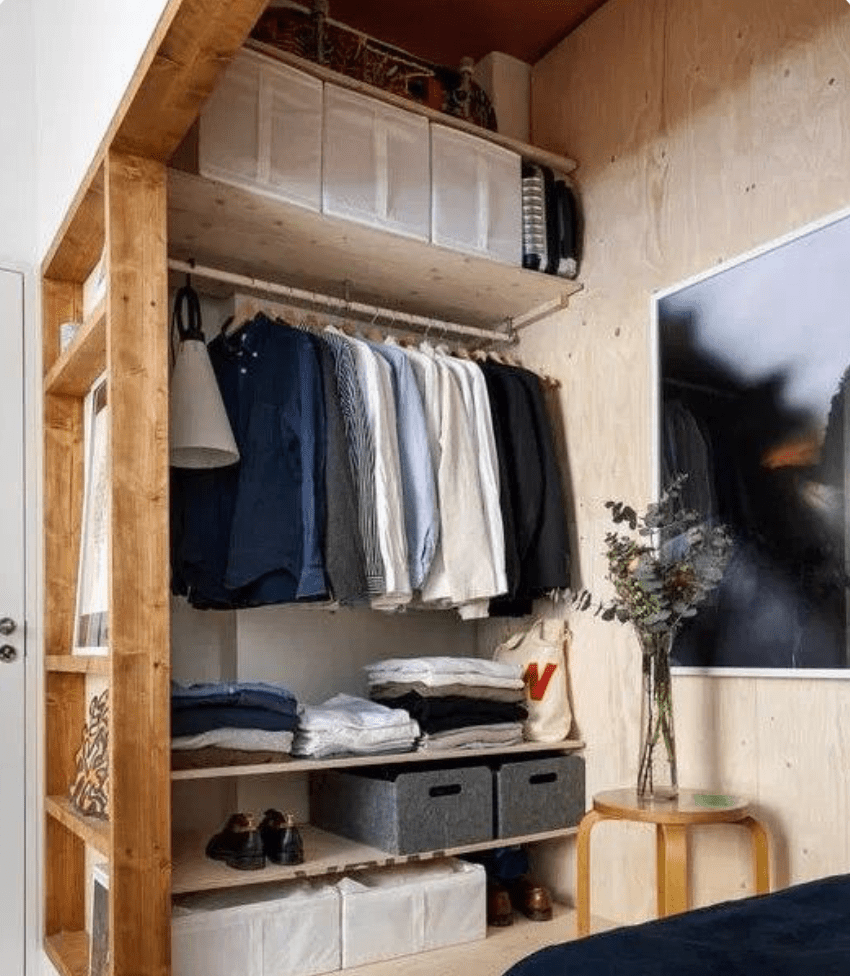 La ropa es variada, tiene formas, colores, texturas distintas. Y colgada así no se ve artística, se ve caótica, aunque esté ordenada. Visualmente es una saturación constante.